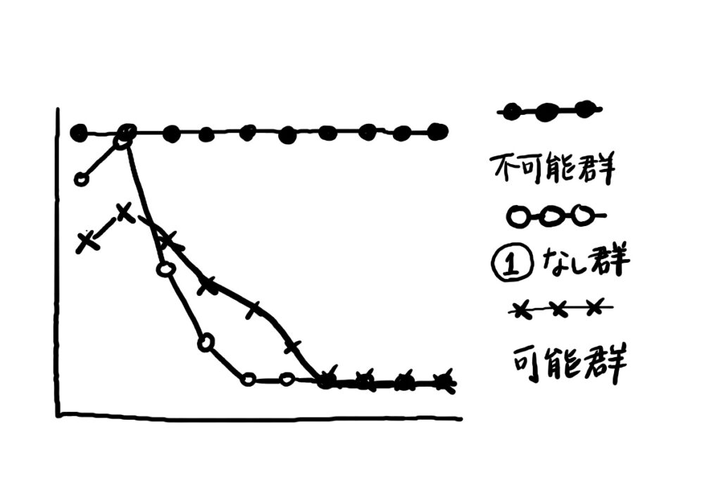 - 統制不可能群—可能群がうまく電気ショックを停止できたら、こっちも停止される群