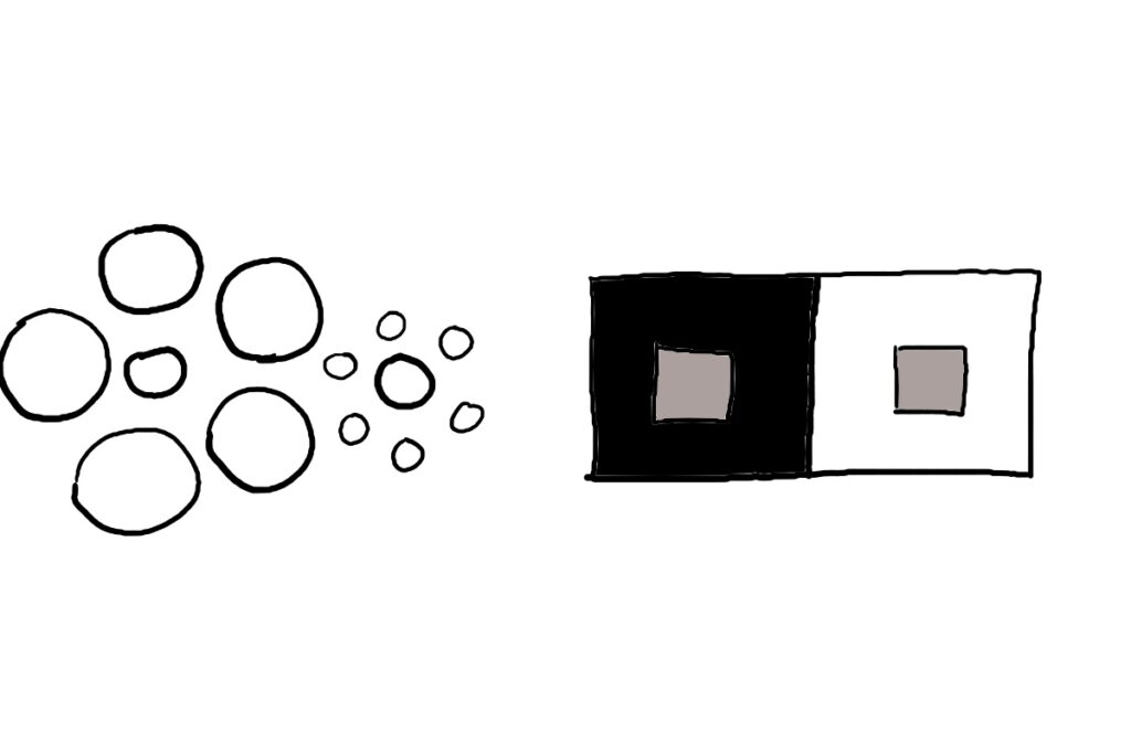 真ん中の○は同じ大きさですし、真ん中の□は同じ色なんですが、周りに影響されて、より小さく又は大きく見えたり、より明るく又は暗く見えたりしますよね。